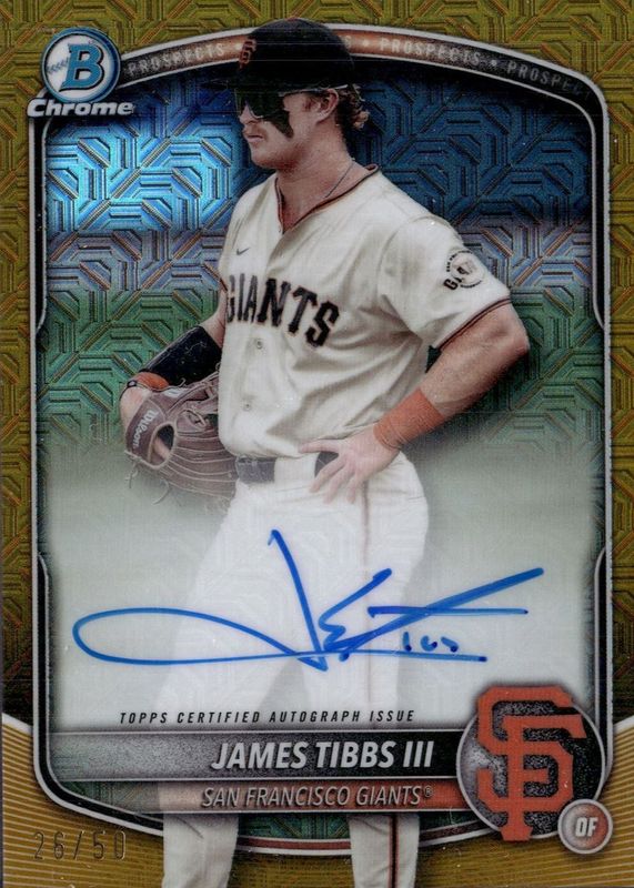 2025 Bowman Chrome Prospect Mega Box Autograph James Tibbs III GOLD #/50 AUTO