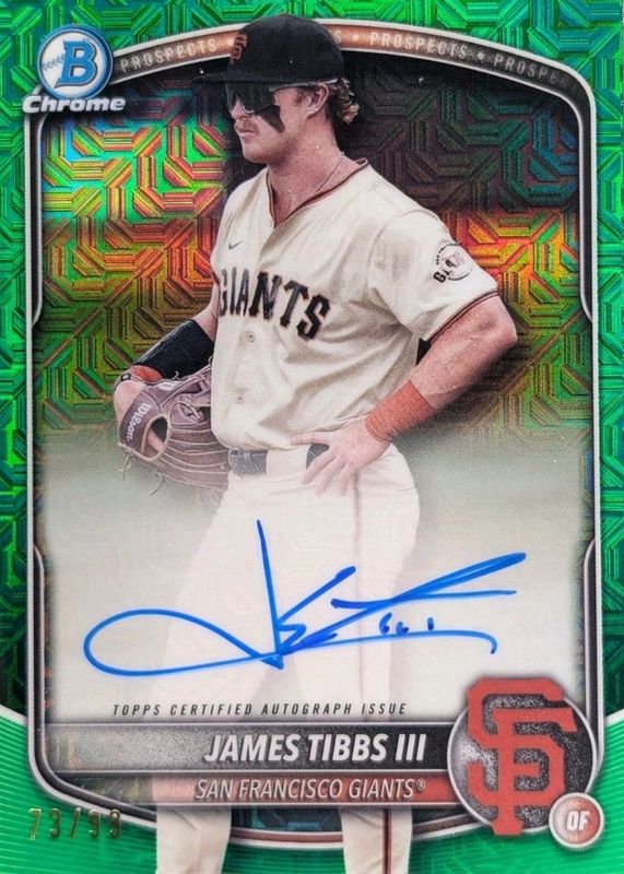 2025 Bowman Chrome Mojo Green Refractor James Tibbs III Auto #/99 Giants MLB
