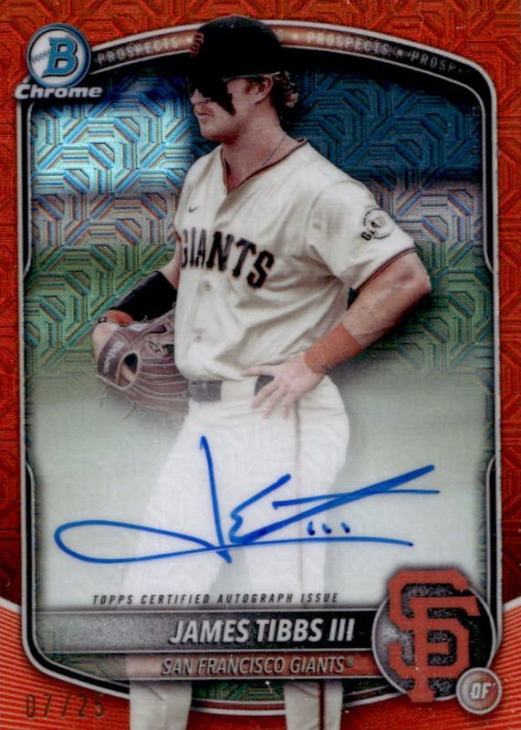 2025 Bowman James Tibbs III /25 Auto Orange Mojo San Francisco Giants BMA-JT