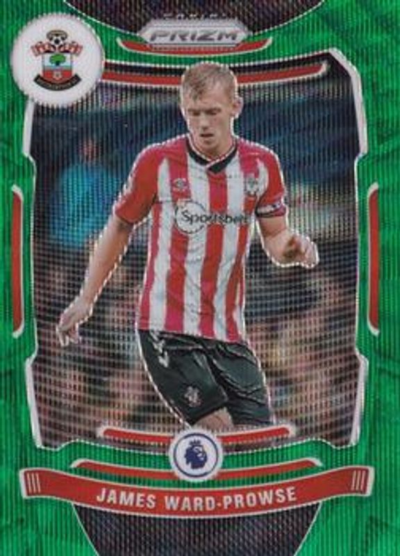 The James Ward-Prowse 2021 Prizm Premier League #110 Green Wave card is 1 of 57 James Ward-Prowse's card variations in the 2021 Prizm Premier League set being tracked by Sports Card Investor, including Base, Blue Mojo, Blue Wave, Breakaway, and Choice Blue Yellow Green.
