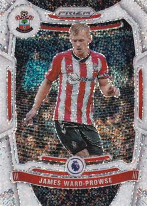 The James Ward-Prowse 2021 Prizm Premier League #110 White Sparkle card is 1 of 57 James Ward-Prowse's card variations in the 2021 Prizm Premier League set being tracked by Sports Card Investor, including Base, Blue Mojo, Blue Wave, Breakaway, and Choice Blue Yellow Green.