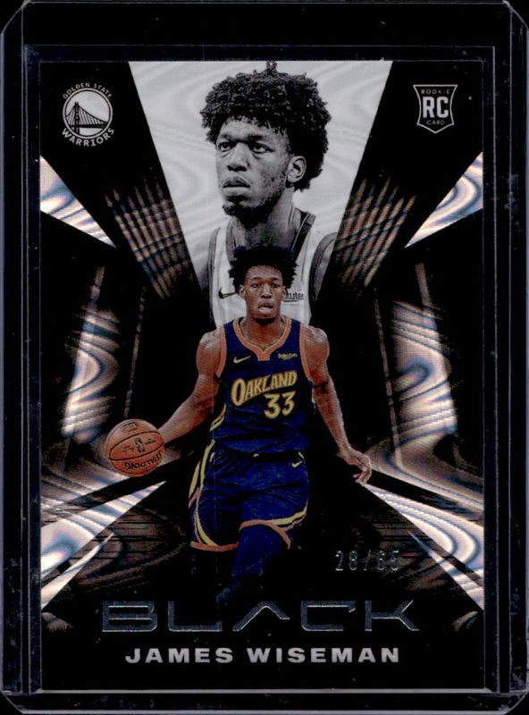The James Wiseman 2020 Black #68 Swirlorama /65 Rookie card is 1 of 30 James Wiseman's card variations in the 2020 Black set being tracked by Sports Card Investor, including #68b Base /149, #68 Base /149, #68b Swirlorama /65, #68 Rainbow Spokes /49, and #68b Rainbow Spokes /49.