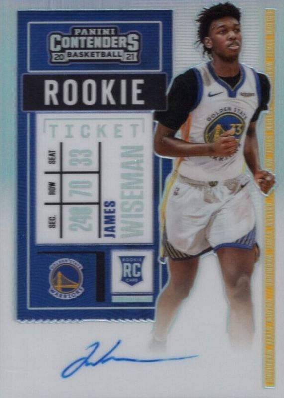 This card is 1 of 28 James Wiseman's card variations in the 2020 Contenders set being tracked by Sports Card Investor, including Rookie Ticket Auto (Running), Rookie Ticket Auto - Clear Ticket (Running), Rookie Ticket Auto - Premium Green Shimmer (Running), Rookie Ticket Auto - Ticket Stub (/33 - Running), and Rookie Ticket Auto Variation (Two Hands on Ball).