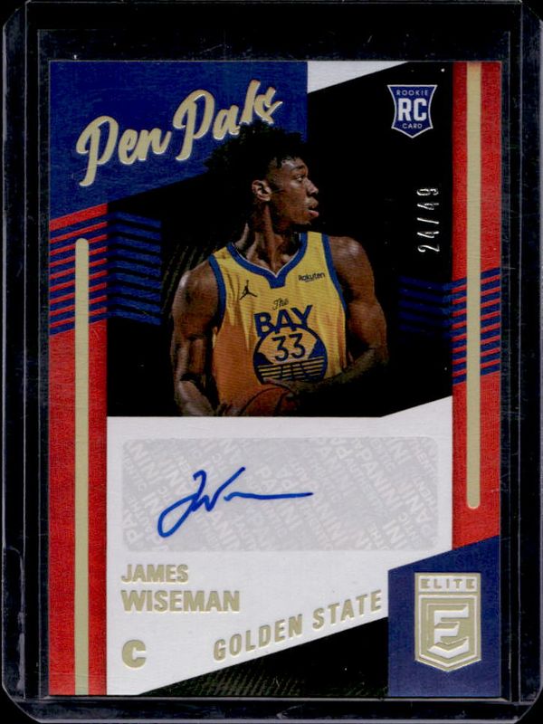 The James Wiseman 2020 Elite #PP-JWS Pen Pals - Red /49 Rookie card is 1 of 15 James Wiseman's card variations in the 2020 Elite set being tracked by Sports Card Investor, including Base, Base Rookie /299, Aspirations (/67), Red, and Status (/33).