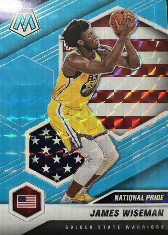 The James Wiseman 2020 Mosaic #260 National Pride - Blue Fluorescent /15 Rookie card in Raw condition has not changed in price in the last 30 days and was last sold for $57.00 .