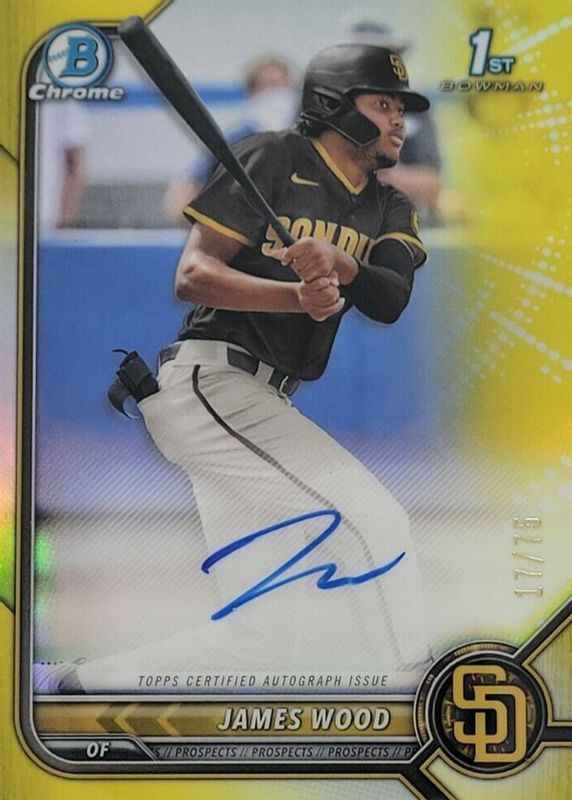 2022 1st Bowman Chrome JAMES WOOD Yellow Refractor /75 Auto Padres #CPA-JWD