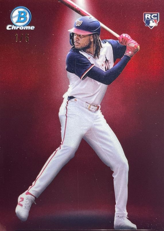 The James Wood 2025 Bowman #BS-11 Bowman Spotlights - Red Refractor /5 Rookie card in Raw condition has not changed in price in the last 30 days and was last sold for $1,047.22 .