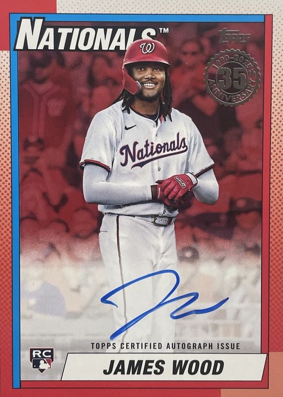 Auctions Ending Soon for James Wood 2025 Topps #90A-JWO 1990 Topps Baseball Autographs - Red /5 Rookie RAW
