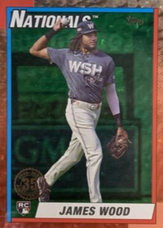 James Wood 2025 Topps #T90-39 1990 Topps Baseball - Green Crackle Foilboard /99 Rookie RAW Price Guide