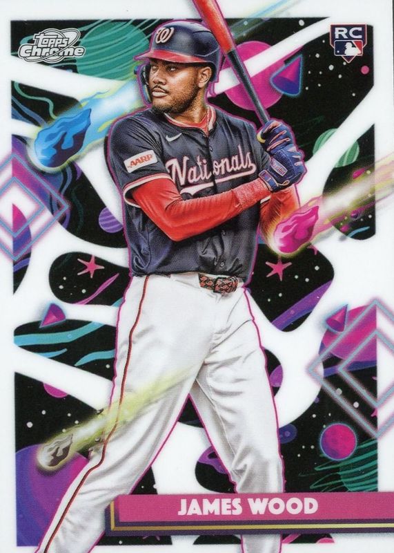 This card is 1 of 13 James Wood's card variations in the 2025 Topps Chrome Cosmic set being tracked by Sports Card Investor, including Base, Nucleus Refractor, Refractor, Aqua Equinox Refractor /199, and Purple Nebula Refractor /150.