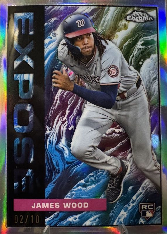 The James Wood 2025 Topps Chrome #TCE-32 Expose /10 Rookie card in Raw condition has not changed in price in the last 30 days and was last sold for $250.00 .