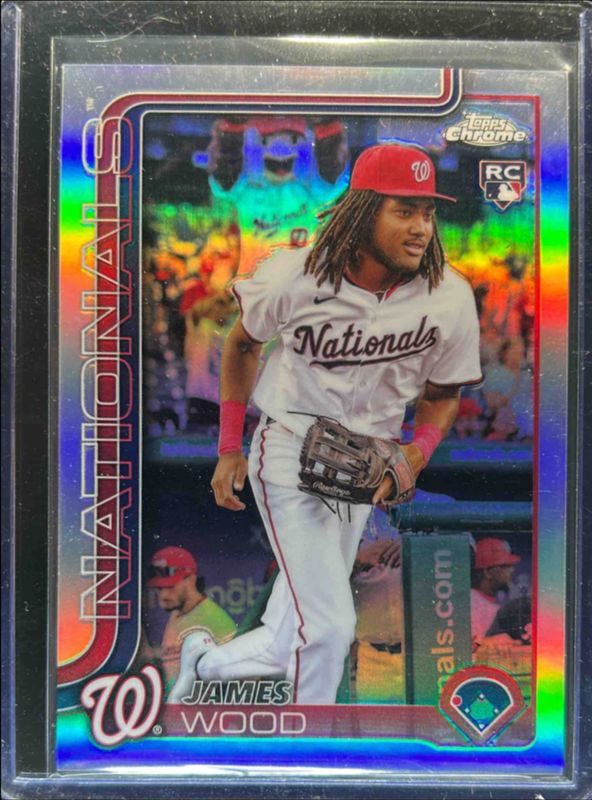 The James Wood 2025 Topps Chrome #132 Super Short Prints Rookie card is 1 of 178 James Wood's card variations in the 2025 Topps Chrome set being tracked by Sports Card Investor, including Base, Geometric Refractor, Image Variation, Lightboard Logo Variation, and Negative Refractor.