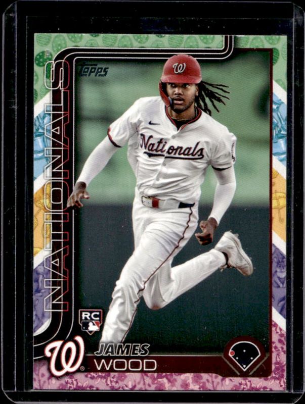 The James Wood 2025 Topps #181 Easter Holiday Tin Border Rookie card is 1 of 333 James Wood's card variations in the 2025 Topps set being tracked by Sports Card Investor, including Base, Aqua Holo Foil, Aqua Rainbow, Diamante Foil, and Eggs.