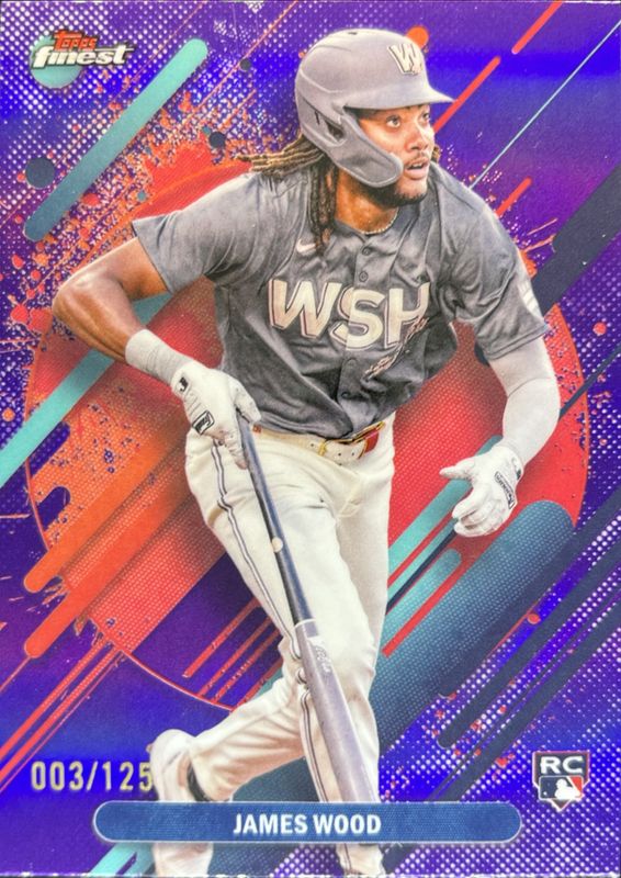 The James Wood 2025 Topps Finest #300 Base Rare - Purple Refractor /125 Rookie card is 1 of 170 James Wood's card variations in the 2025 Topps Finest set being tracked by Sports Card Investor, including Common, Rare, Uncommon, Common - Checkerboard Refractor, and Common - Refractor.