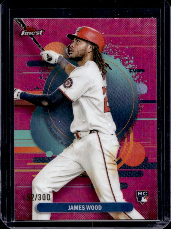 The James Wood 2025 Topps Finest #200 Base Uncommon - Magenta Refractor /300 Rookie card is 1 of 170 James Wood's card variations in the 2025 Topps Finest set being tracked by Sports Card Investor, including Common, Rare, Uncommon, Common - Checkerboard Refractor, and Common - Refractor.