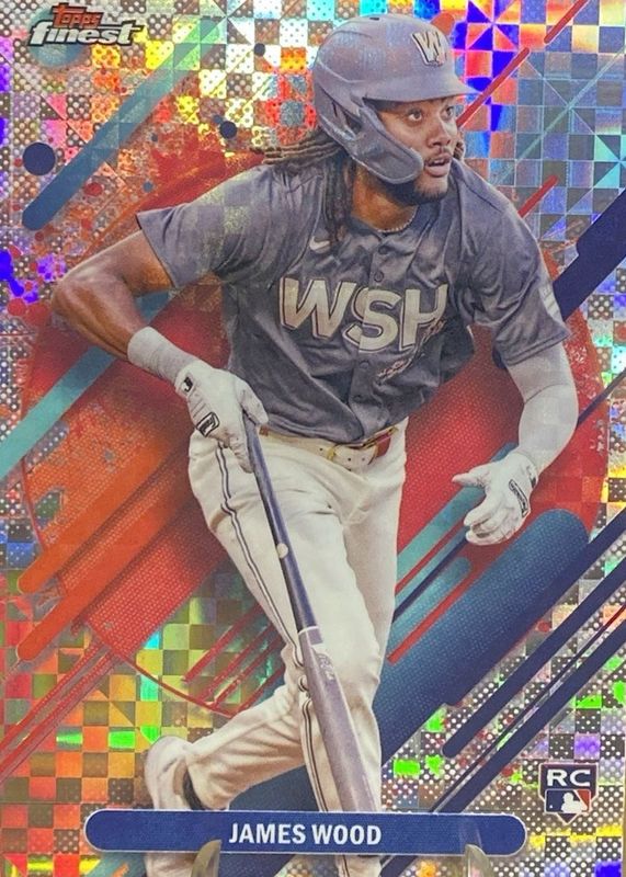 The James Wood 2025 Topps Finest #300 Rare - Checkerboard Refractor Rookie card in Raw condition has moved up $0.81 (+18.3%) in the last 30 days and was last sold for $5.24 .