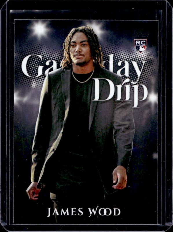 The James Wood 2025 Topps #GD-3 Gameday Drip Rookie card is 1 of 333 James Wood's card variations in the 2025 Topps set being tracked by Sports Card Investor, including Base, Aqua Holo Foil, Aqua Rainbow, Diamante Foil, and Eggs.