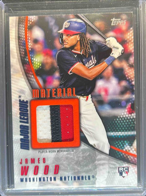 The James Wood 2025 Topps #MLM2-JW Major League Material Relics (Series 2) - Orange /25 Rookie card is 1 of 333 James Wood's card variations in the 2025 Topps set being tracked by Sports Card Investor, including Base, Aqua Holo Foil, Aqua Rainbow, Diamante Foil, and Eggs.