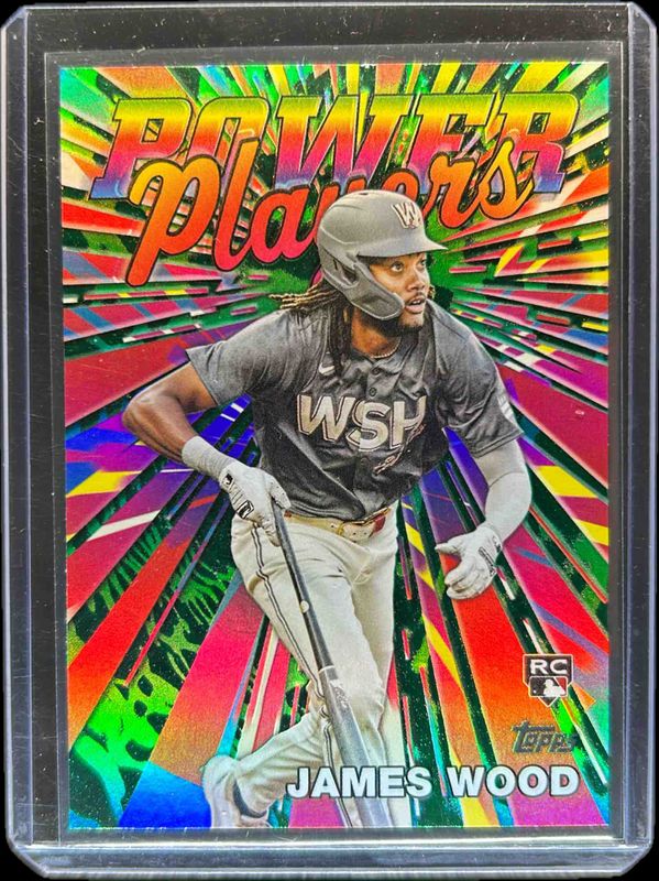 The James Wood 2025 Topps #PP-23 Power Players - Green /99 Rookie card is 1 of 333 James Wood's card variations in the 2025 Topps set being tracked by Sports Card Investor, including Base, Aqua Holo Foil, Aqua Rainbow, Diamante Foil, and Eggs.