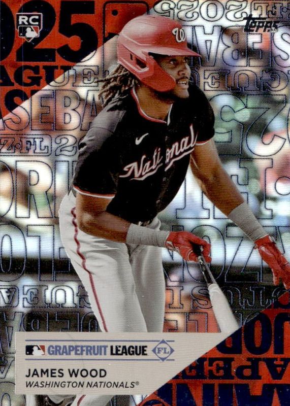 The James Wood 2025 Topps #TG-18 Training Grounds - Orange Foil /25 Rookie card in Raw condition has not changed in price in the last 30 days and was last sold for $17.50 .