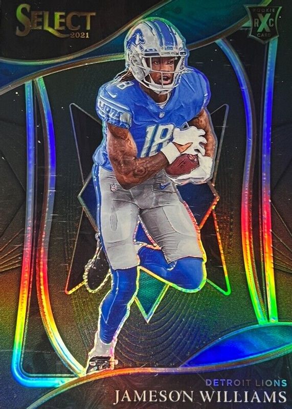 This card is 1 of 4 Jameson Williams' card variations in the 2021 Select set being tracked by Sports Card Investor, including XRC Prizm, XRC Prizm - Tie-Dye /25, and XRC Prizm - Gold /10.