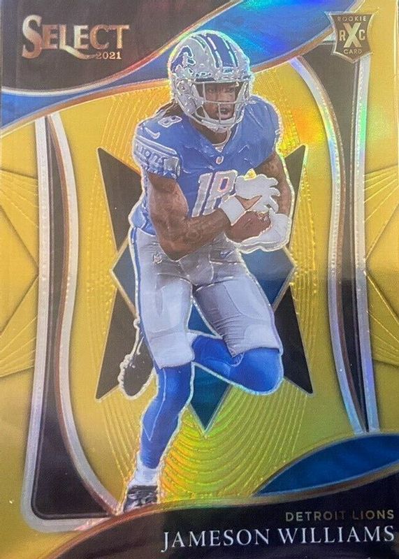 This card is 1 of 4 Jameson Williams' card variations in the 2021 Select set being tracked by Sports Card Investor, including XRC Prizm, XRC Prizm - Tie-Dye /25, and XRC Prizm - Black /1.