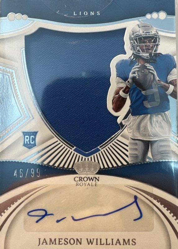 2022 Panini Chronicles Crown Royale Jameson Williams RC PATCH AUTO /99 MBA AUTH