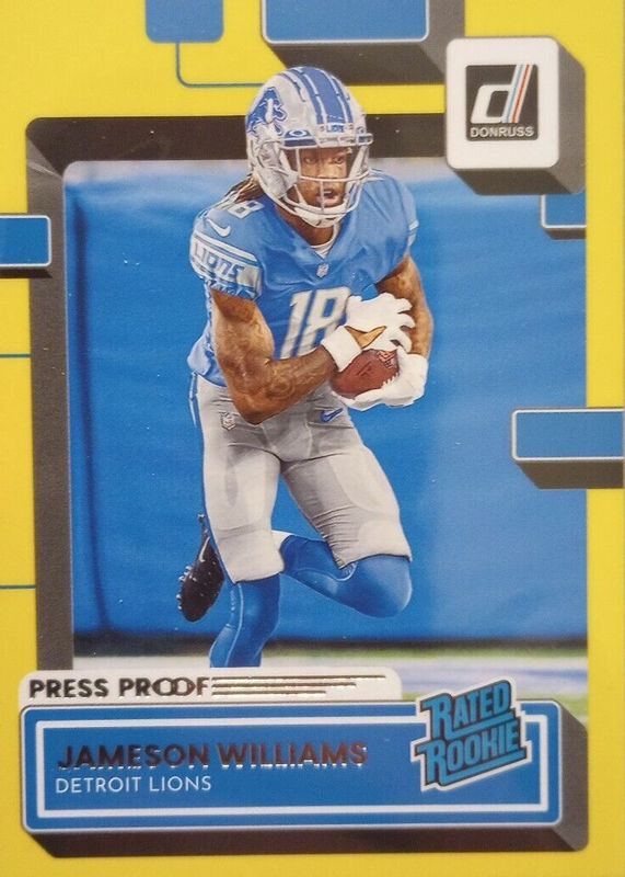 Jameson Williams 2022 Donruss #308 Press Proof Yellow Rookie RAW Price Guide
