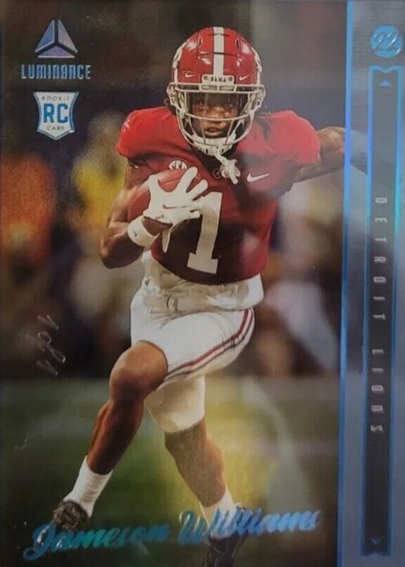 This card is 1 of 9 Jameson Williams' card variations in the 2022 Luminance set being tracked by Sports Card Investor, including Base, Gold /249, Blue /149, Green /99, and Orange /50.