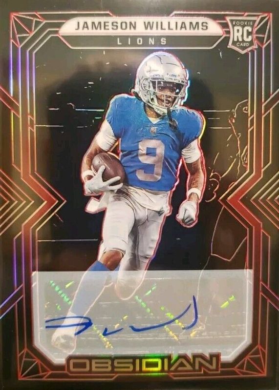 The Jameson Williams 2022 Obsidian #116 Rookie Autographs - Electric Etch Red /10 card in Raw condition has not changed in price in the last 30 days and was last sold for $69.99 .