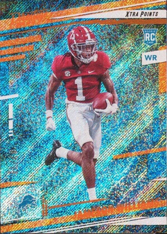 This card is 1 of 27 Jameson Williams' card variations in the 2022 Prestige set being tracked by Sports Card Investor, including Base, Xtra Points Astral, Xtra Points Diamond, Xtra Points Dots, and Xtra Points Galaxy.