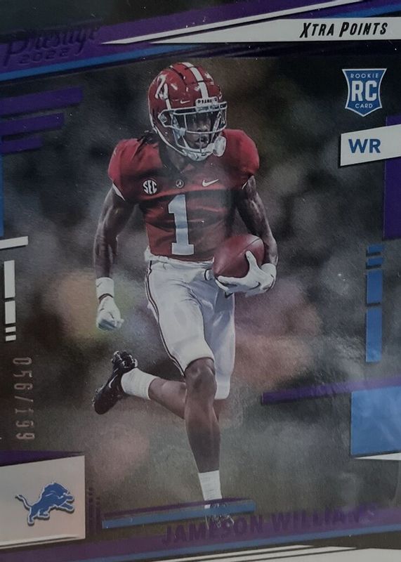 The Jameson Williams 2022 Prestige #307 Xtra Points Purple /199 Rookie card in Raw condition has not changed in price in the last 30 days and was last sold for $3.00 .