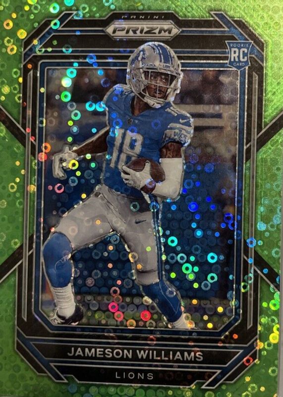 This card is 1 of 82 Jameson Williams' card variations in the 2022 Prizm set being tracked by Sports Card Investor, including Base, Green, Green Ice, Light Blue, and No Huddle.
