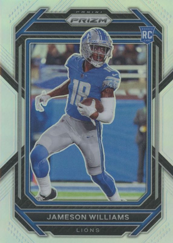 The Jameson Williams 2022 Prizm #311 Silver Rookie card in Raw condition has moved up $5.96 (+54.2%) in the last 30 days and was last sold for $16.95 .