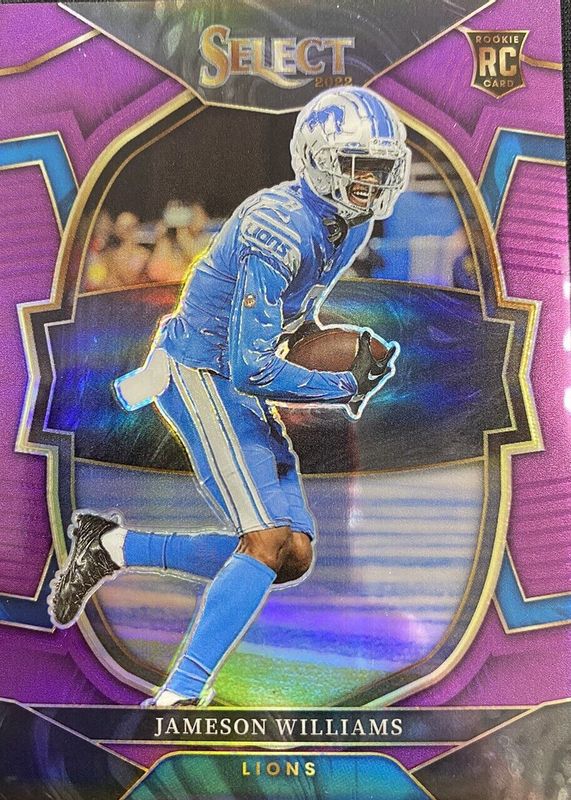 2022 Panini Select #57 Jameson Williams 47/75 Purple Concourse Prizm Lions RC