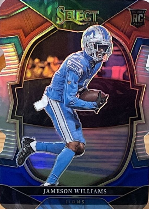 2022 Select Jameson Williams RC Red and Blue Prizm Die Cut Concourse #57 Lions