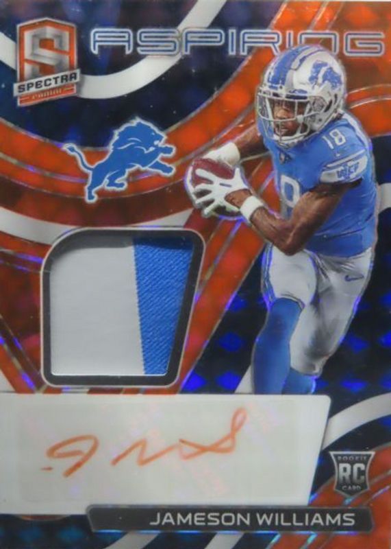 Auctions Ending Soon for Jameson Williams 2022 Spectra #APA-JWI Aspiring Patch Autographs - Neon Orange /15 Rookie RAW