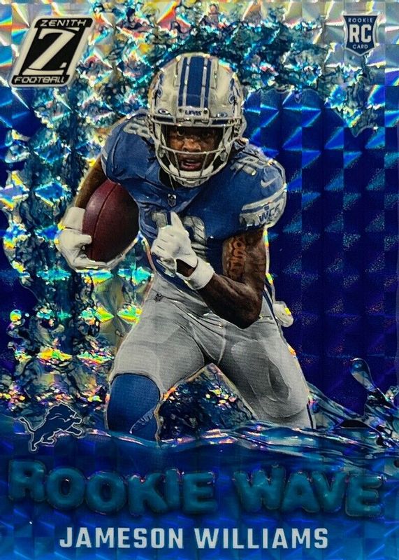 The Jameson Williams 2022 Zenith #RW-JW Rookie Wave - Blue card in Raw condition has not changed in price in the last 30 days and was last sold for $10.20 .