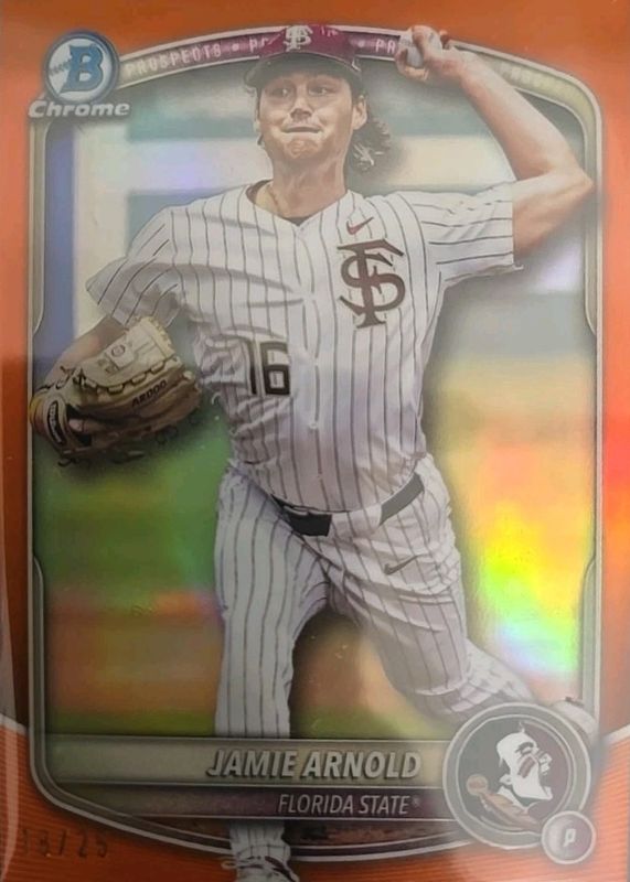 Jamie Arnold 2025 Bowman Draft #BDC-30 Chrome College Variation - Orange Refractor /25 RAW Price Guide