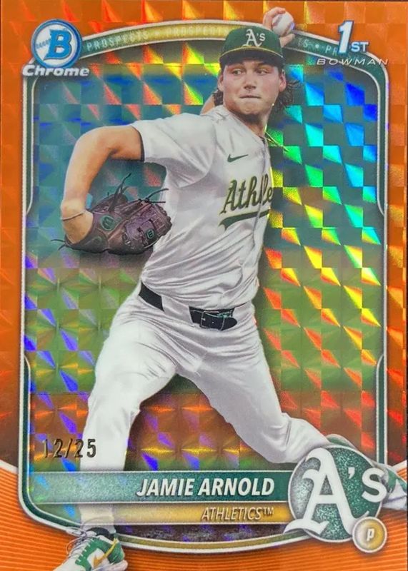 Jamie Arnold 2025 Bowman Draft #BDC-30 Chrome - Orange Geometric Refractor /25 (1st) RAW Price Guide