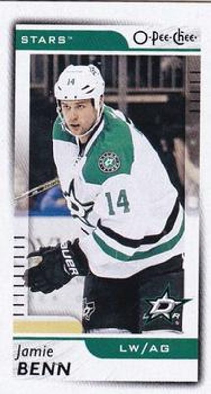 The Jamie Benn 2017 O-Pee-Chee #M-58 Minis card is 1 of 13 Jamie Benn's card variations in the 2017 O-Pee-Chee set being tracked by Sports Card Investor, including Base, Rainbow Foil, Red, Retro, and Retro Blank Back.