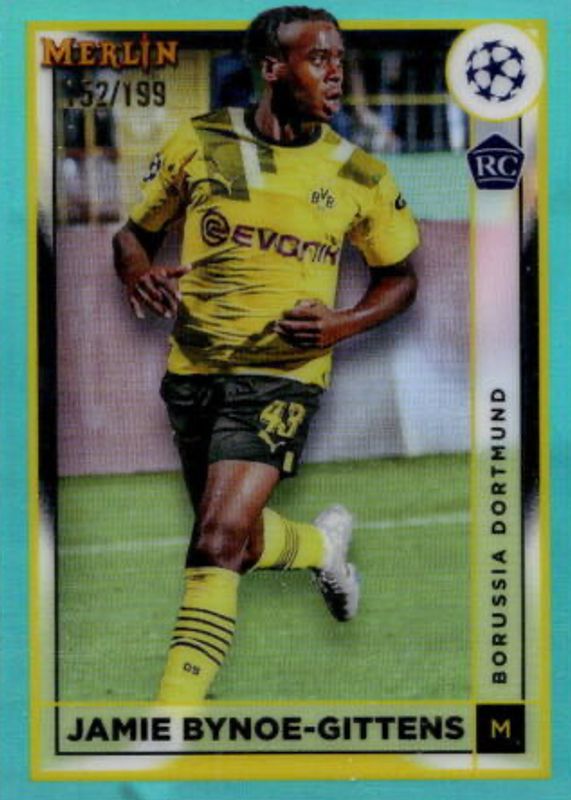 JAMIE BYNOE-GITTENS 2022-23 Topps Merlin Chrome Rookie 132/199 Aqua Dortmund #31