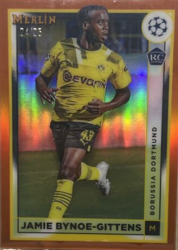Recent Sales of Jamie Bynoe-Gittens 2022 Topps Merlin Chrome UEFA Club Competitions #31 Orange Refractor /25 Rookie Raw