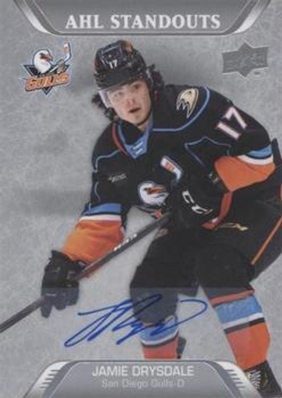 The Jamie Drysdale 2020 Upper Deck AHL #250 Autographs card is 1 of 12 Jamie Drysdale's card variations in the 2020 Upper Deck AHL set being tracked by Sports Card Investor, including #154 Base, #250 Base, #250 Red, #154 UD Exclusives /100, and #250 Gold /25.