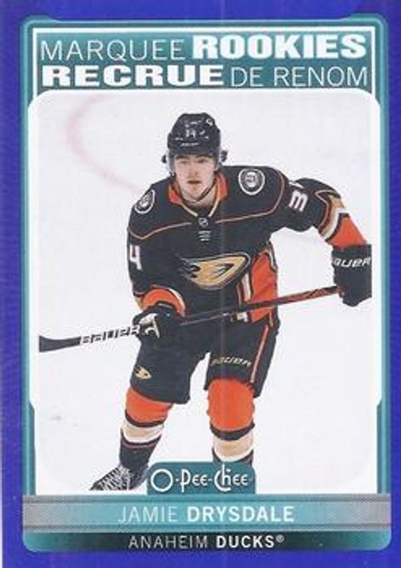 The Jamie Drysdale 2021 O-Pee-Chee #534 Blue Border Rookie card is 1 of 21 Jamie Drysdale's card variations in the 2021 O-Pee-Chee set being tracked by Sports Card Investor, including #247b Base, #534 Base, #534 Red Border, #534 Retro, and Retro Blank Back.