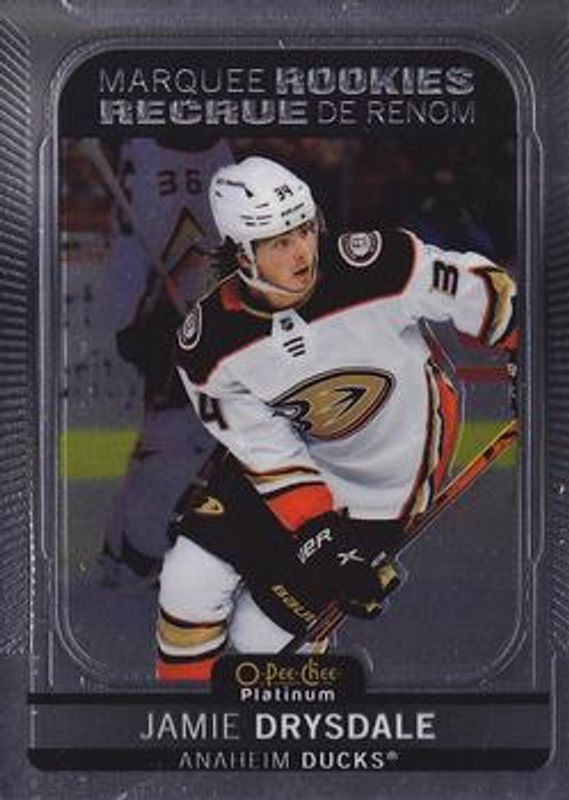 The Jamie Drysdale 2021 O-Pee-Chee Platinum #207 Base Rookie card is 1 of 41 Jamie Drysdale's card variations in the 2021 O-Pee-Chee Platinum set being tracked by Sports Card Investor, including Black Shield (Marquee Rookies), Blue Surge, Matte Pink, Neon Yellow Surge, and Rainbow.