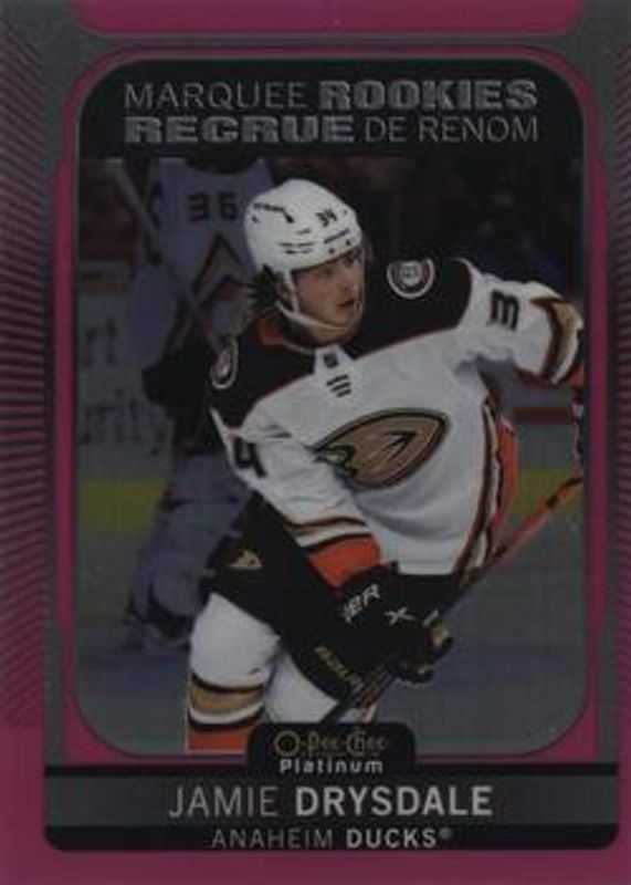 The Jamie Drysdale 2021 O-Pee-Chee Platinum #207 Matte Pink Rookie card is 1 of 41 Jamie Drysdale's card variations in the 2021 O-Pee-Chee Platinum set being tracked by Sports Card Investor, including Base, Black Shield (Marquee Rookies), Blue Surge, Neon Yellow Surge, and Rainbow.