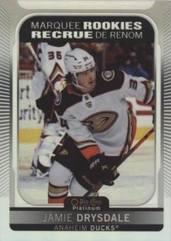 The Jamie Drysdale 2021 O-Pee-Chee Platinum #207 Rainbow Rookie card is 1 of 41 Jamie Drysdale's card variations in the 2021 O-Pee-Chee Platinum set being tracked by Sports Card Investor, including Base, Black Shield (Marquee Rookies), Blue Surge, Matte Pink, and Neon Yellow Surge.