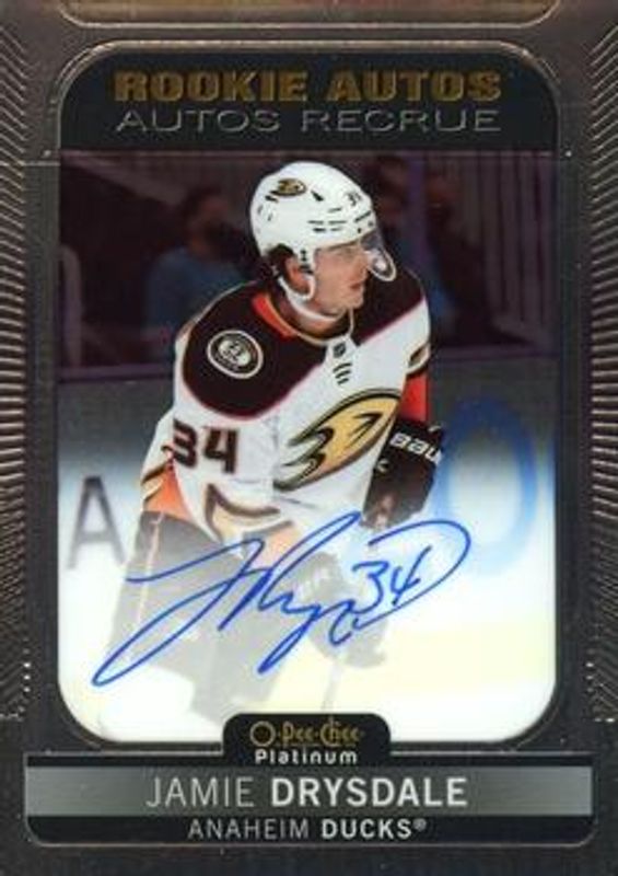 The Jamie Drysdale 2021 O-Pee-Chee Platinum #R-JD Rookie Autographs card is 1 of 41 Jamie Drysdale's card variations in the 2021 O-Pee-Chee Platinum set being tracked by Sports Card Investor, including Base, Black Shield (Marquee Rookies), Blue Surge, Matte Pink, and Neon Yellow Surge.