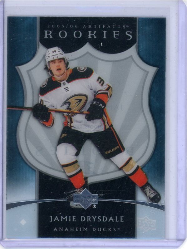 The Jamie Drysdale 2021 Upper Deck Artifacts #CC05-13 2005 Clear Cut Retro Rookies card is 1 of 37 Jamie Drysdale's card variations in the 2021 Upper Deck Artifacts set being tracked by Sports Card Investor, including Base /999, Neon Green, Rose Gold, Turquoise, and Ruby /499.